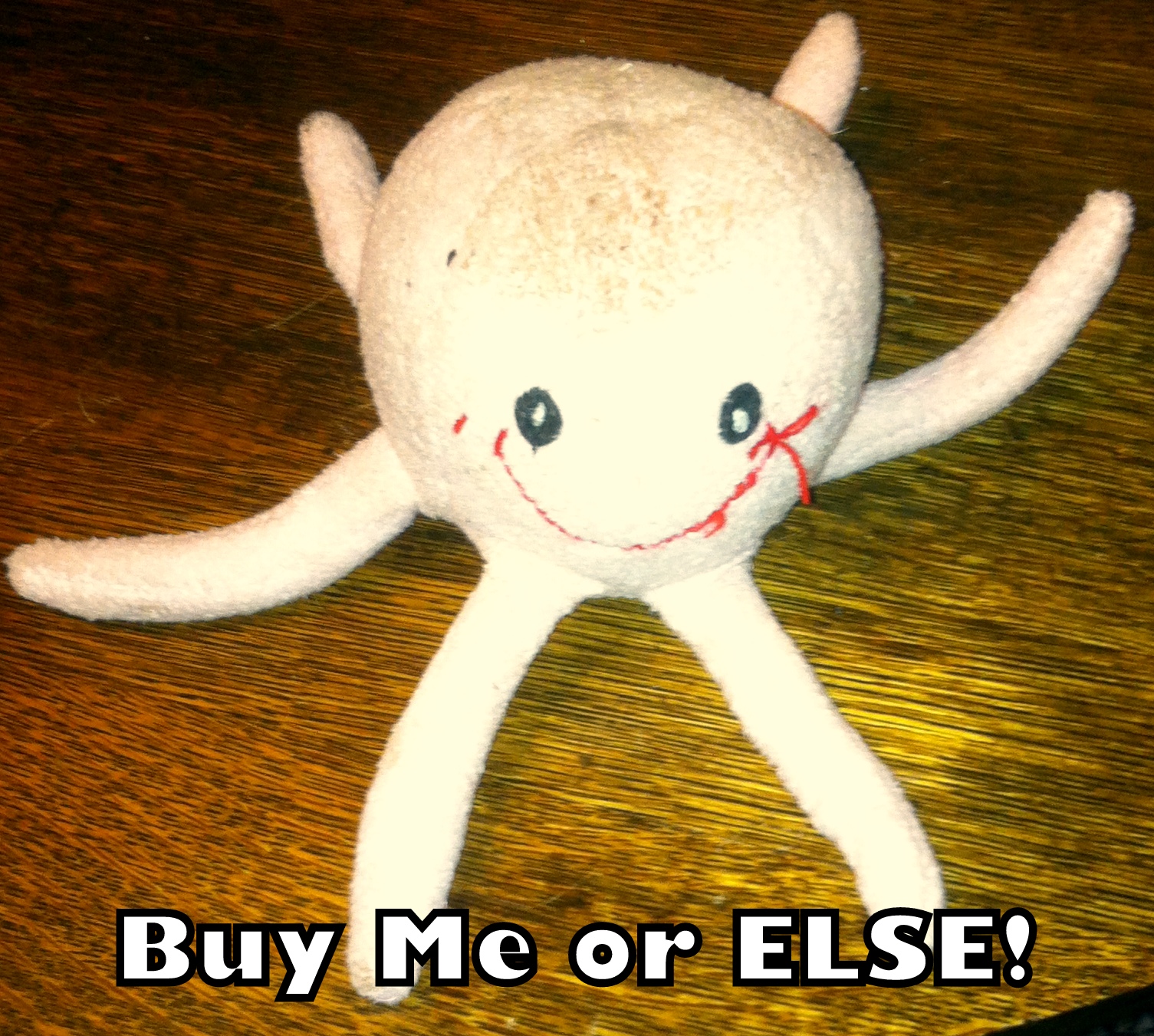 Buy this or else would seem to be the message. This would go along with the trick or treat motif. Seems sinister and coercive. Perfect.