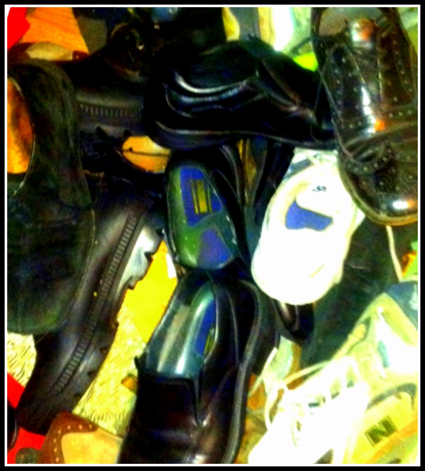 That’s where the shoes come in. We had a closet in the house that stored miscellaneous house things, like sheets, blankets, some old coats. And shoes. Shoes no longer worn on any regular basis but in too good of shape to just be thrown out. They were all thrown in a jumble on the floor of the closet.