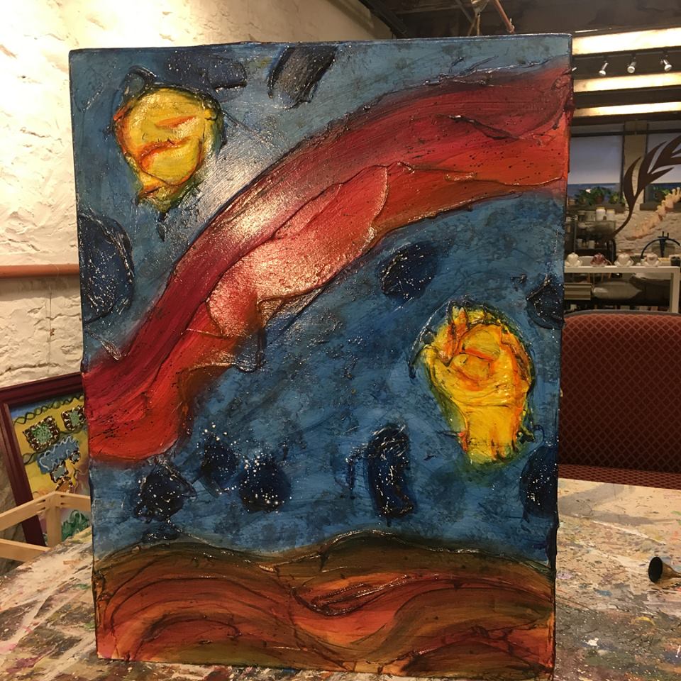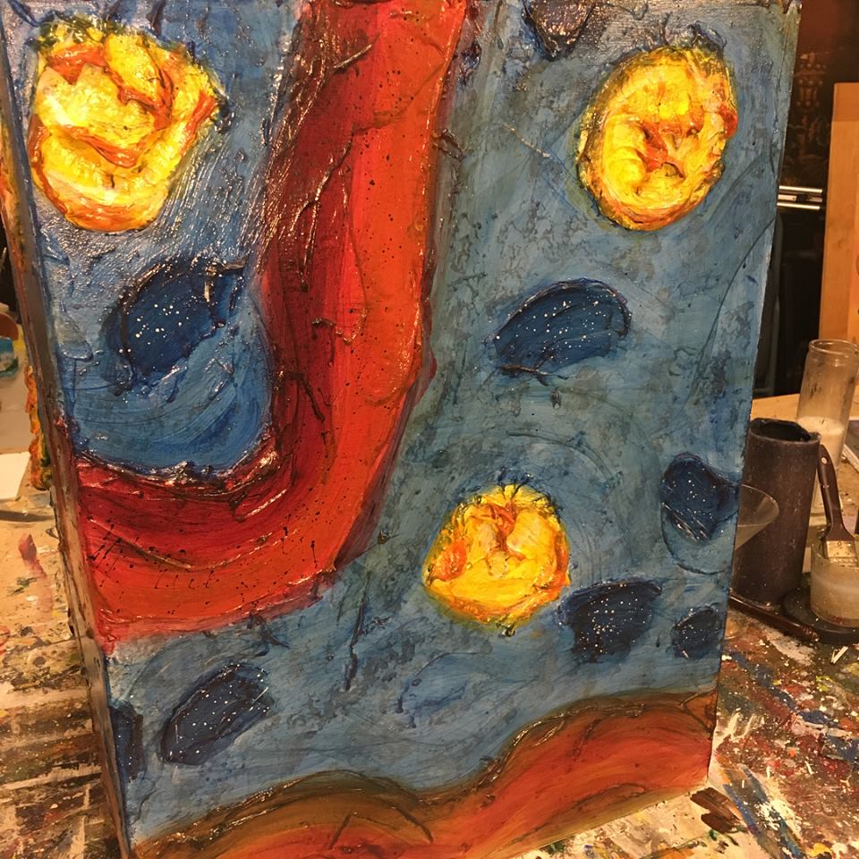 Reminds me of my “standing stones.” There is something satisfying about the painting continuing from side to side. Right?
