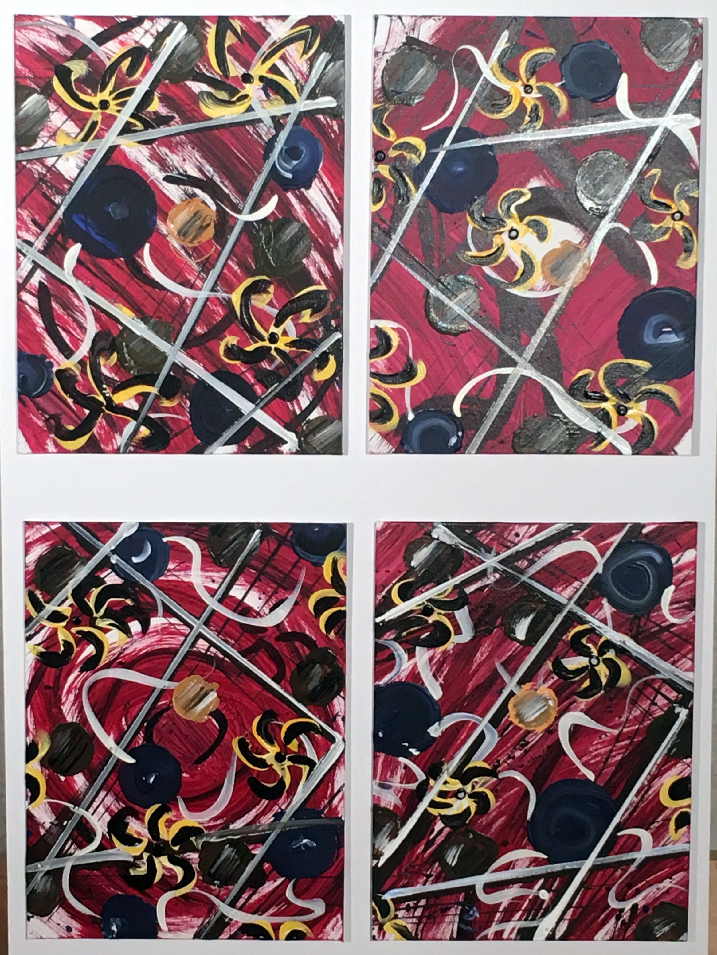 Tagged abstract art, acrylic, circles, lines, mini paintings, ribbons